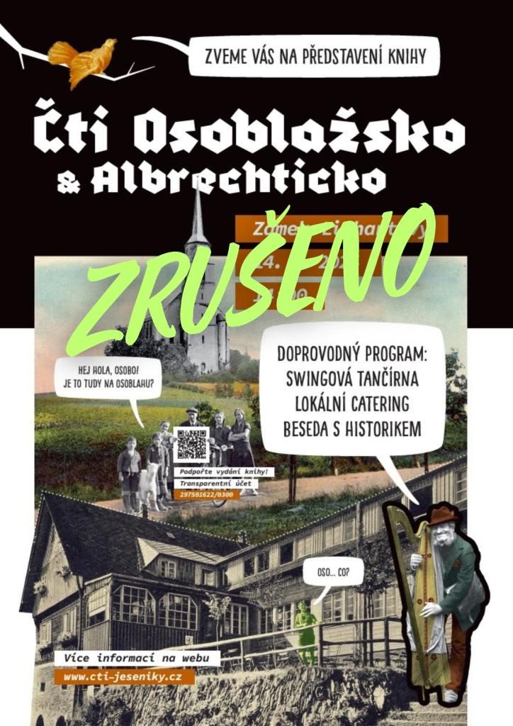 Vážení návštěvníci, informujeme vás, že plánovaná akce "Křest knihy Čti Osoblažsko & Albrechticko", která měla proběhnout v sobotu 14. září, se z technických důvodů neuskuteční. Děkujeme za pochopení.