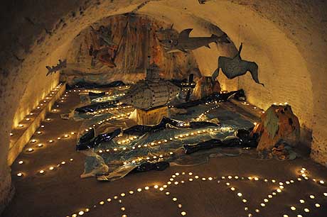Kastelán, opět popustil uzdu své fantazii a pro noční prohlídku zhmotnil řadu ilustrací z knih vtahujících čtenáře dobrodružných příběhů Julese Verna do trojrozměrného světa mořských hlubin.