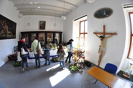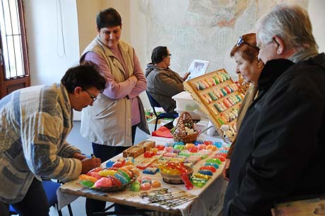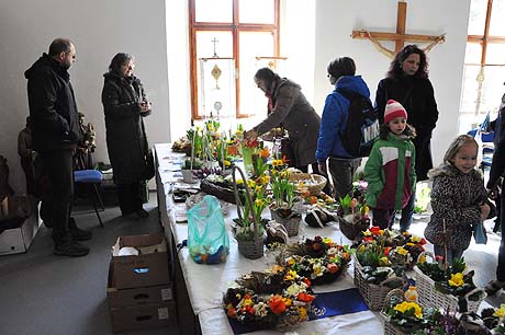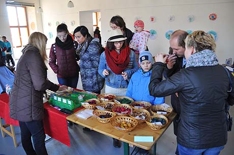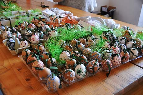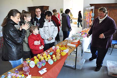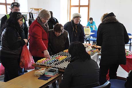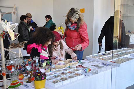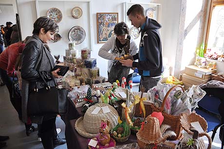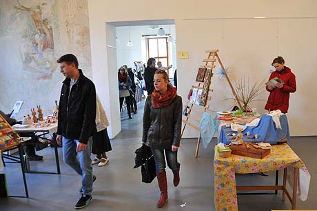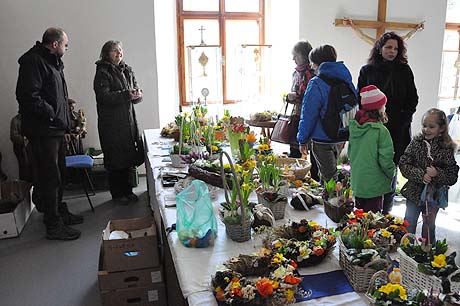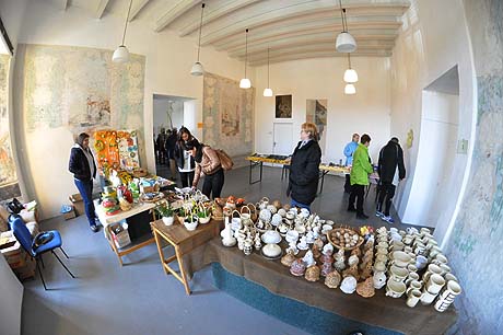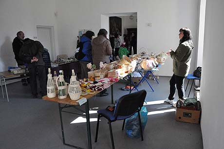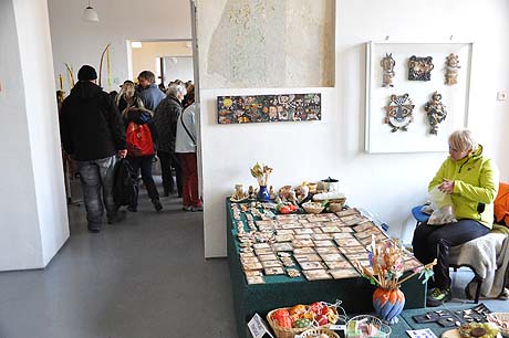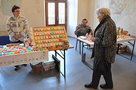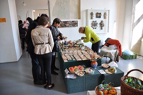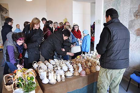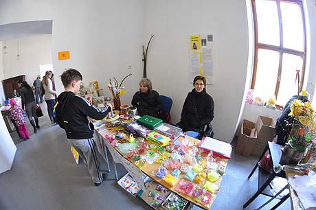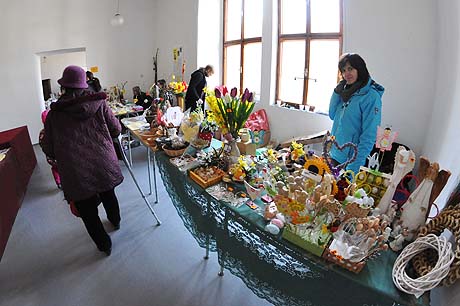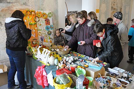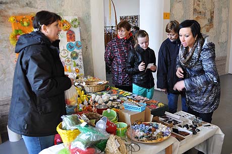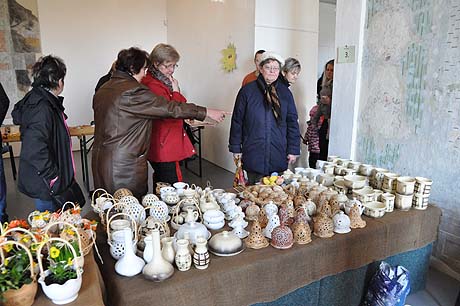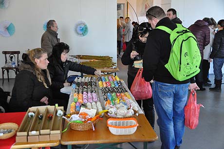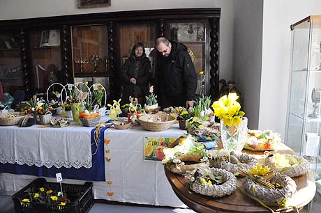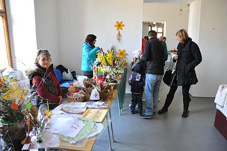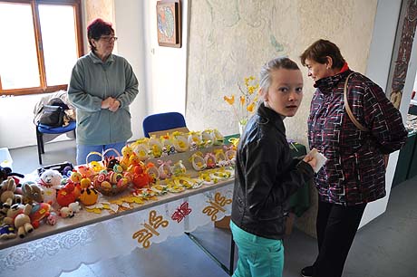 Košíky malé i větší z tradičních i méně tradičních materiálů, pletené či háčkované slepičky, andílci, hrníčky, stejně jako veselé pohádkové postavičky z keramiky. Velký zájem výhradně mužské části návštěvníků od prcků po dědečky přitahovala široká nabídka pomlázek.