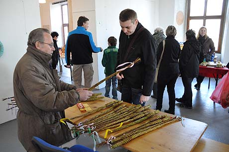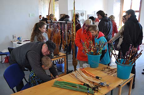 Řada z budoucích koledníků se nespokojila s pouhým nákupem spletených vrbových proutků a v hojném počtu využili možnosti naučit se od pana Jaroslava Sedláčka techniku výroby tatarů. Dívčí část návštěvníků nepohrdla nabídkou šperků, náramků a broží vytvořených rovněž z přírodních materiálů.