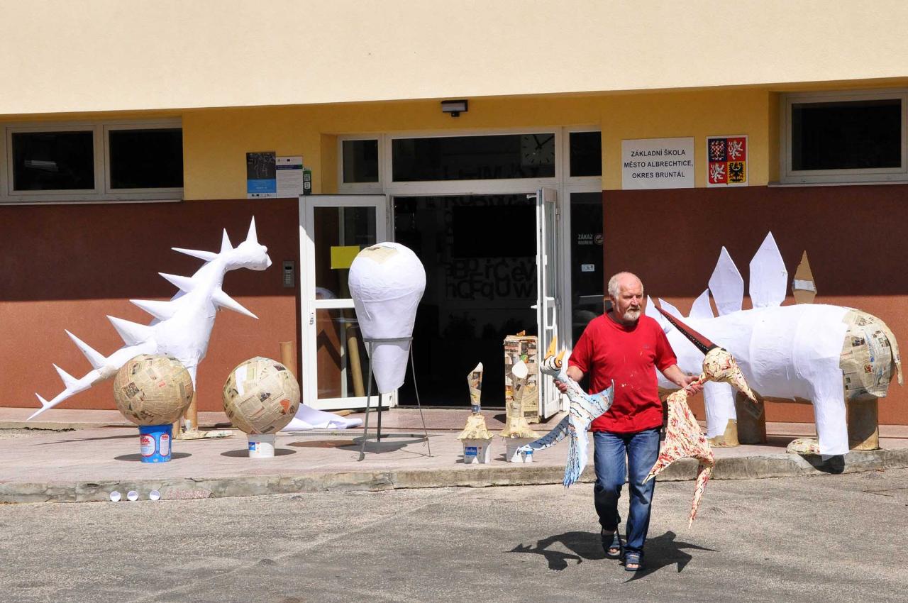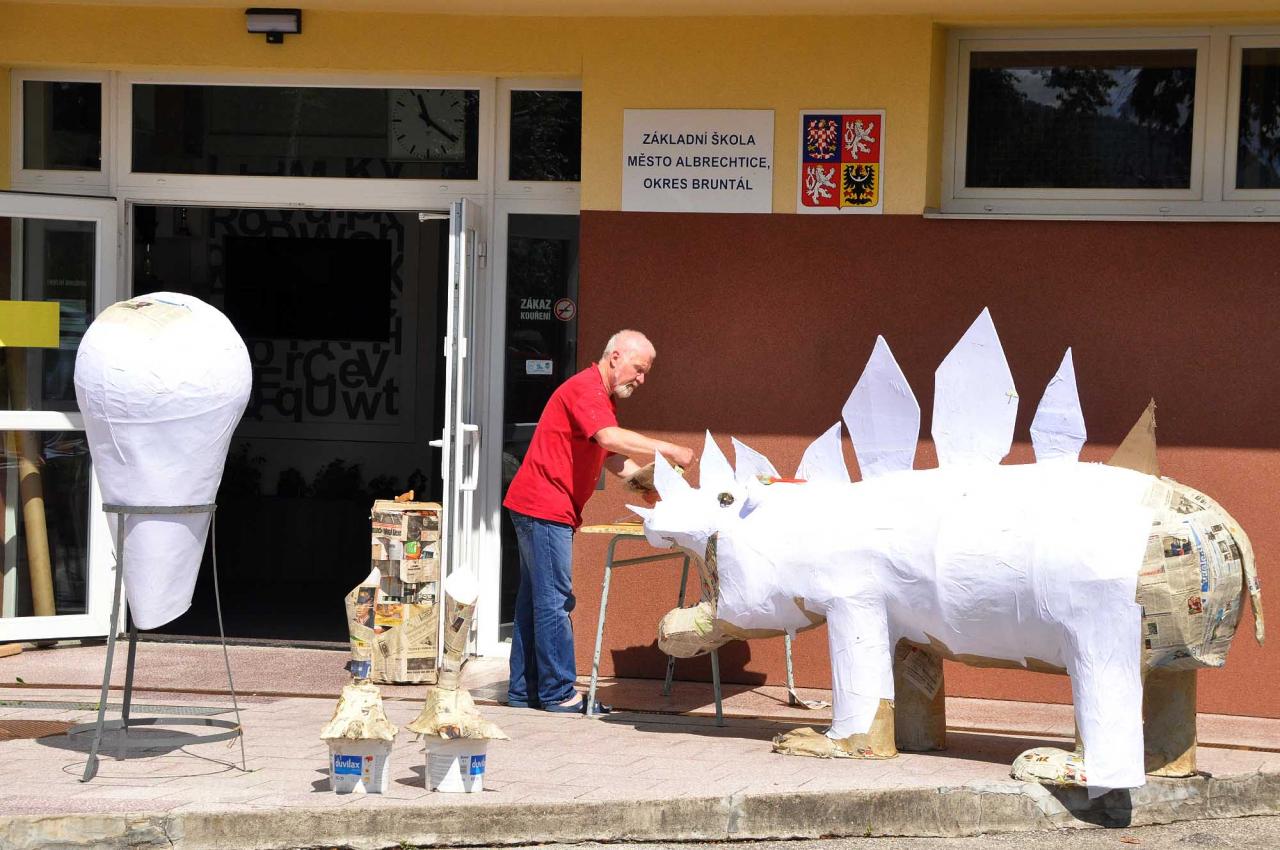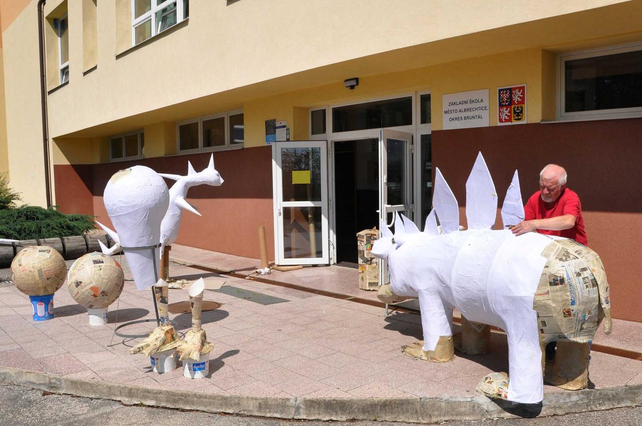 Zatím se zvířata suší za dozoru J. Hrubého před výtvarnou dílnou…