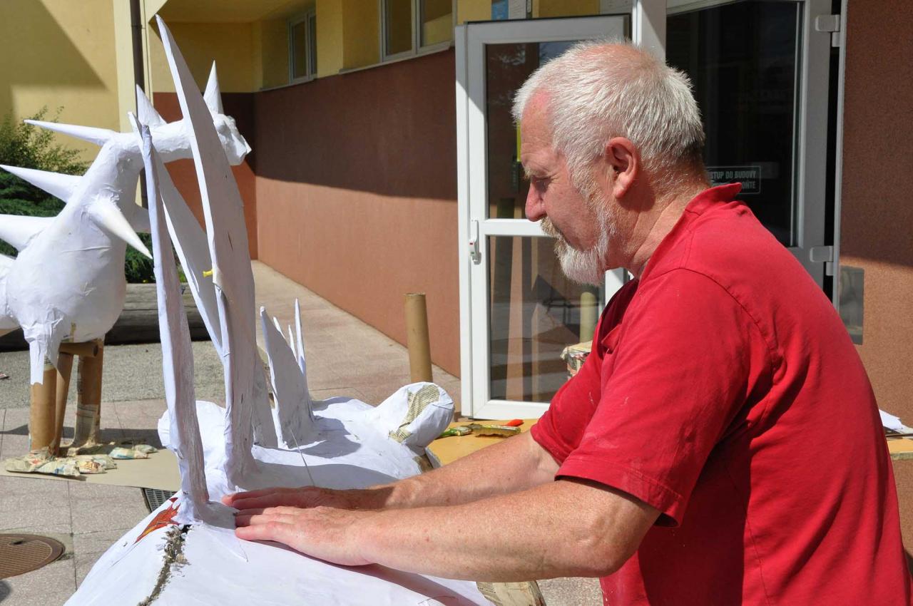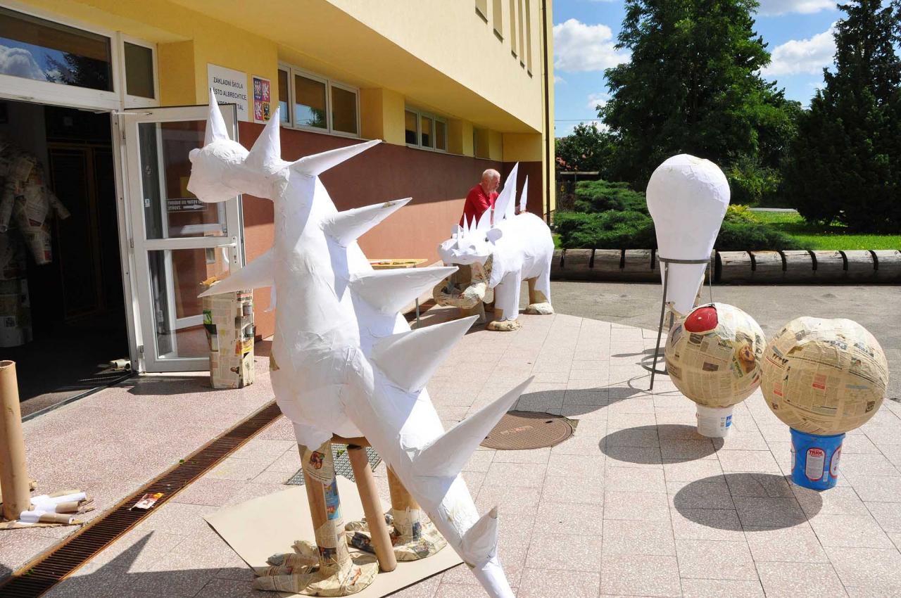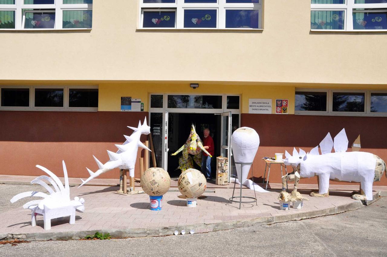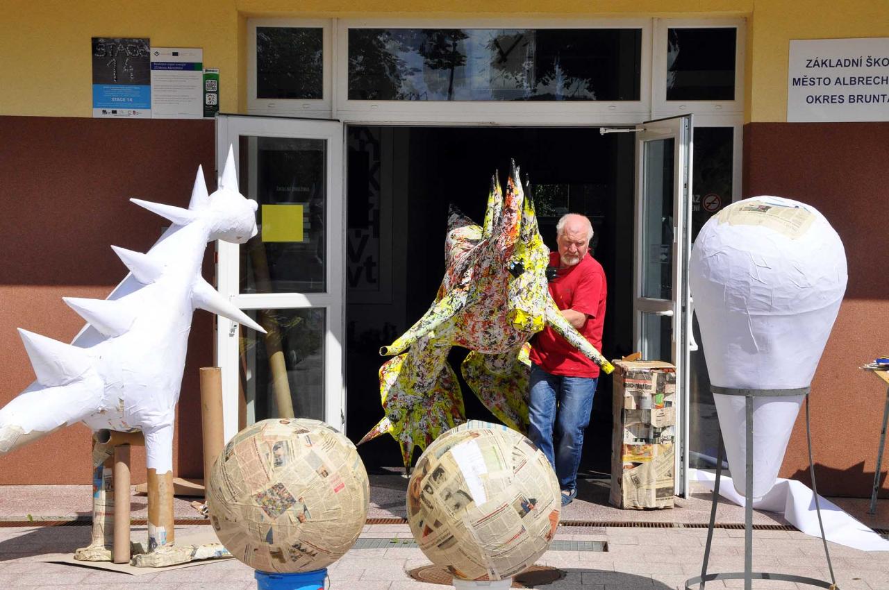 Zatím se zvířata suší za dozoru J. Hrubého před výtvarnou dílnou…