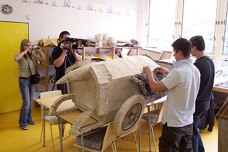 Dokončování papírových plastik a jejich převoz na zámek