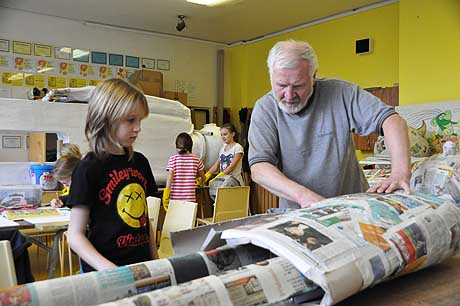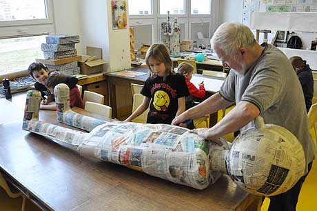 Mimo drobnějších výtvorů, jakými jsou bájná ryba nebo například figurky Igráčků, se děti vrhly už v listopadu minulého roku na ztvárnění papírového potápěče v nadživotní velikosti.