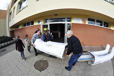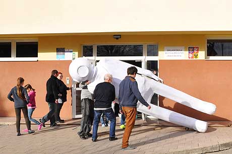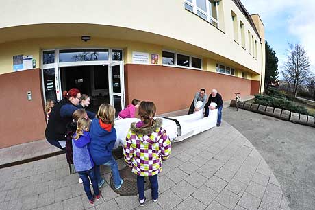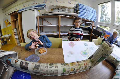 Připravit lepidlo a papír pro nanášení dalších a dalších vrstev určujících tvar potápěče. Nedávno děti neudržely na uzdě svoji zvědavost a umožnily zatím ještě ne zcela dokončenému potápěči krátkou lednovou procházku před školou.