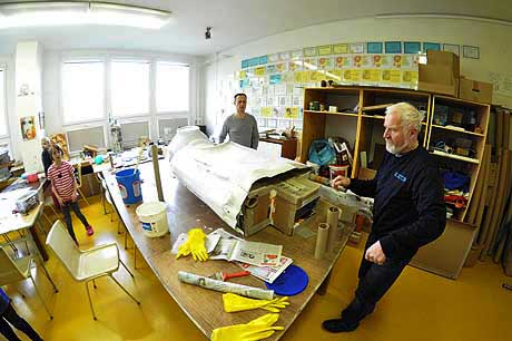 Aby dětská expozice pod názvem „Podmořský svět“ mohla být instalována nejpozději do konce letošního dubna, musí Jaroslav Hrubý každodenně před příchodem dětí zajistit přípravné práce na zafixování hrubé stavby skeletu.